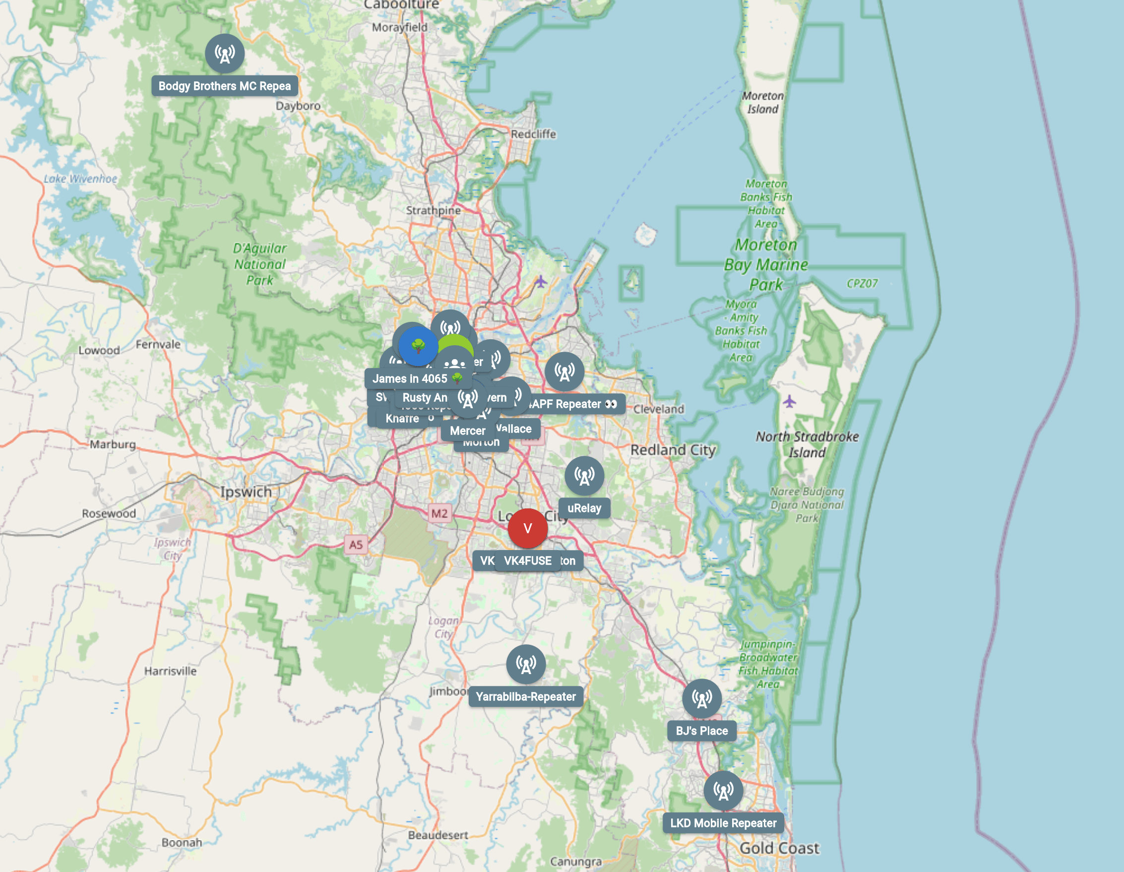 Here's a map (as at Jan 4 2026) showing some of the repeaters and “companions” (people) in the mesh - there are many close to the CBD, but an increasing amount outside it. Repeaters are visible to everyone on MeshCore, but companion nodes don't automatically share their contact details unless you “advert” them.